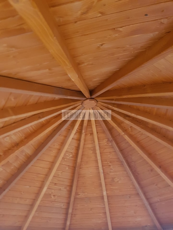 Tető: borovi fenyő lambéria, bitumenes zsindely.